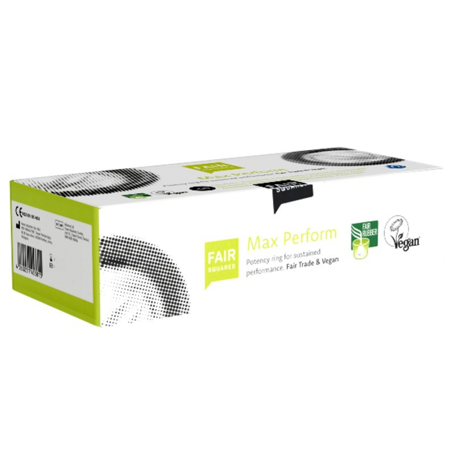 100 stuks grootverpakking Fair Squared Max Perform condooms. Het Fair Squared Max Perform condoom heeft een ingebouwde potentie-ring. De potentie-ring zorgt voor een verbeterde en langere erectie. Het Fair Squared Max Perform condoom is een duurzaam condoom van natuurlijk latex en is CO2 neutraal geproduceerd. Het rubber komt uit plantages in India waarna het vervolgens wordt verwerkt in Duitsland. Deze Fair Trade condooms zorgen voor betere leef- en werkomstandigheden voor de arbeiders in India omdat ze worden betaald voor de werkelijke productiekosten en deze prijs niet wordt bepaald door de internationale markt. Kenmerkend van Fair Trade producten is dat er strengere milieu-eisen en handelsvoorwaarden aan deze producten worden gesteld.