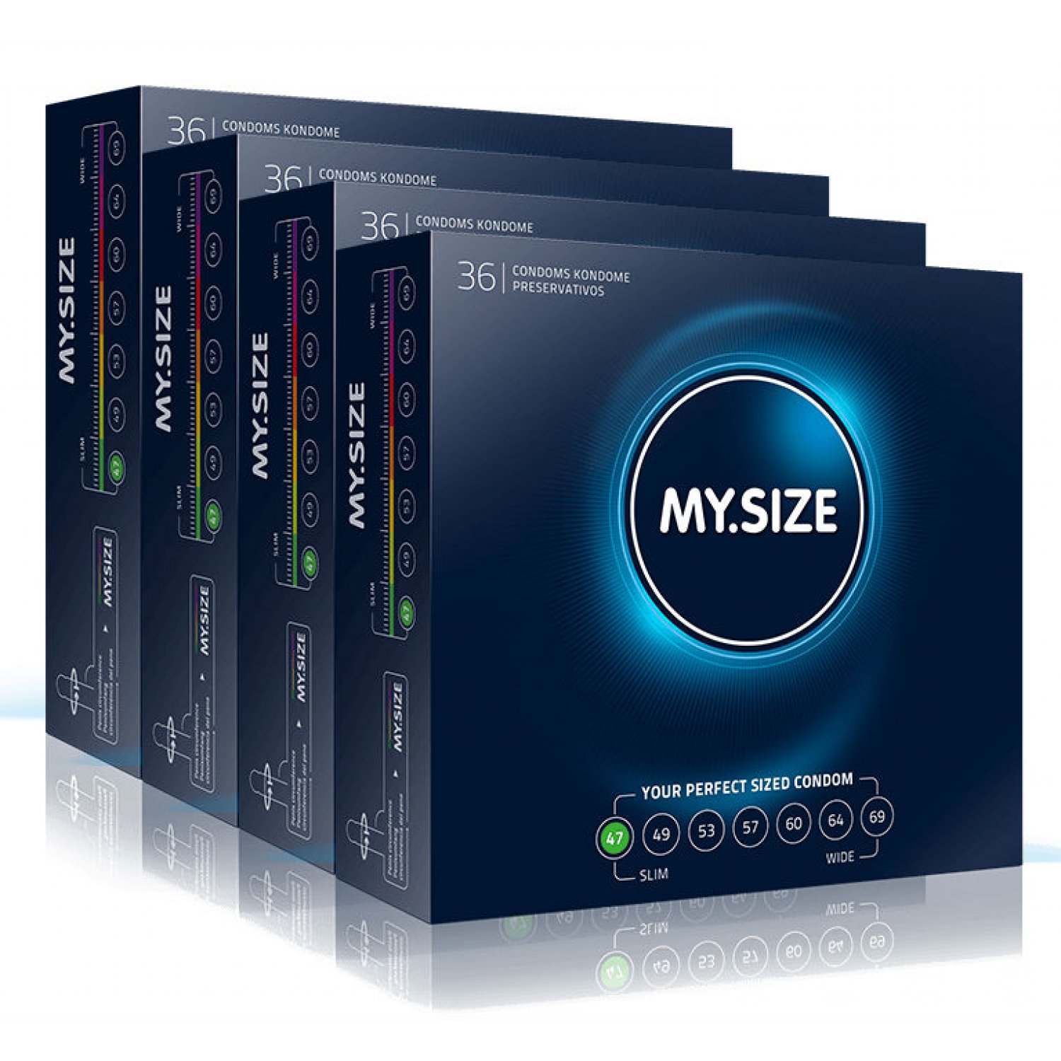 My Size 49 - 144 stuks grootverpakking. Het My Size 49 condoom heeft een nominale breedte van 49 mm. en een lengte van 160 mm. Het condooms is gemaakt van natuurlijk rubber latex en is voorzien van glijmiddel op siliconenbasis. Het condoom heeft een rechte pasvorm, heeft een gladde structuur en is voorzien van een reservoir. De dikte van het condoom is normaal te noemen met 70 microns, oftewel 0,07 mm.