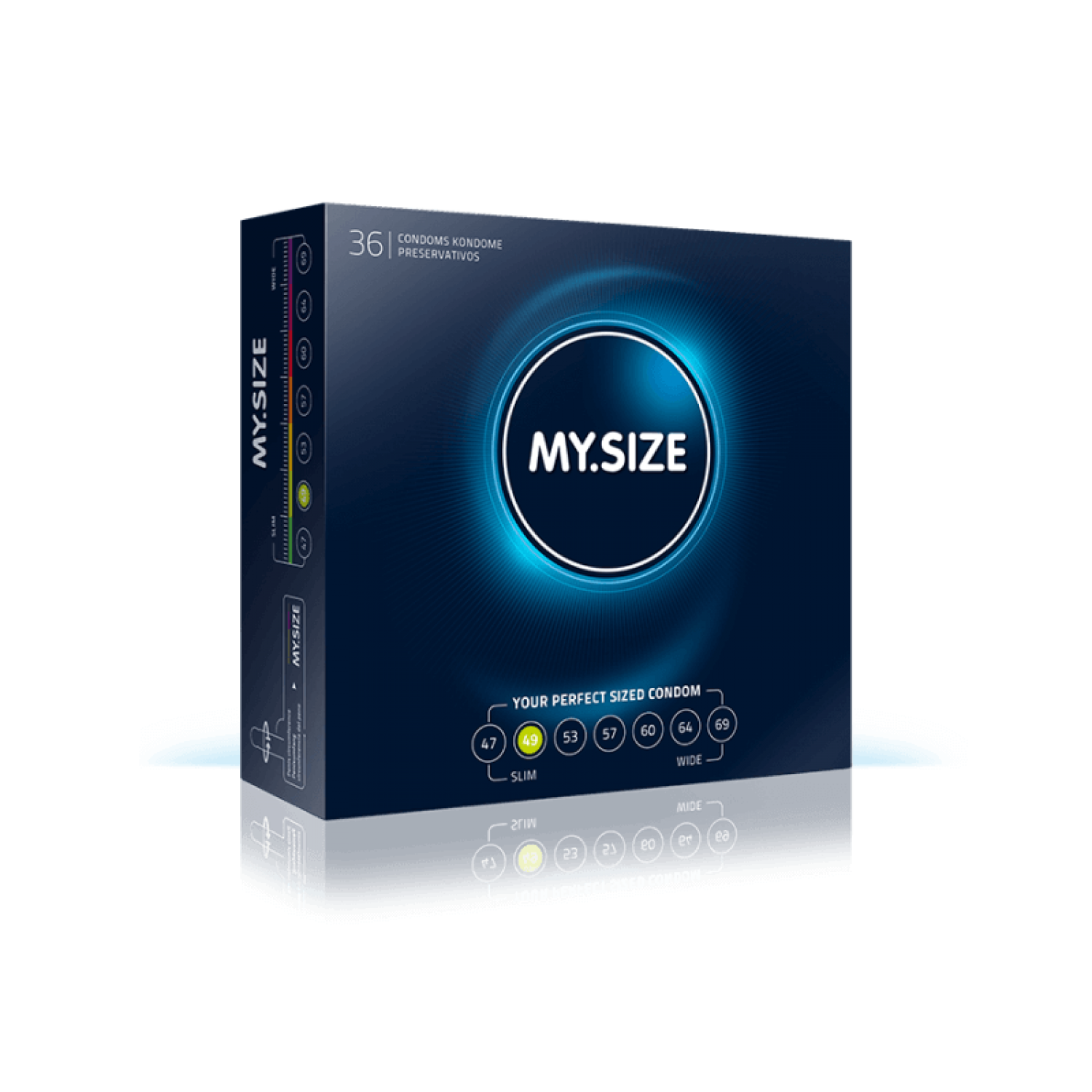 My Size 49 - 36 stuks. Het My Size 49 condoom heeft een nominale breedte van 49 mm. en een lengte van 160 mm. Het condooms is gemaakt van natuurlijk rubber latex en is voorzien van glijmiddel op siliconenbasis. Het condoom heeft een rechte pasvorm, heeft een gladde structuur en is voorzien van een reservoir. De dikte van het condoom is normaal te noemen met 70 microns, oftewel 0,07 mm.