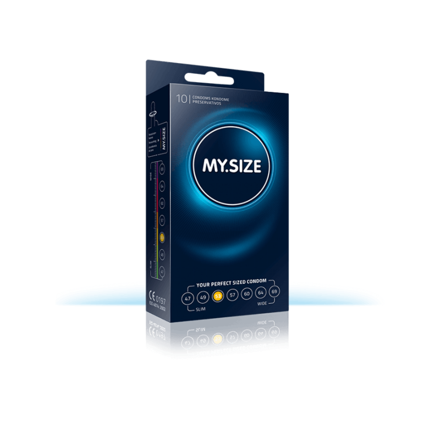 My Size 53 - 10 stuks. Het My Size 53 condoom heeft een nominale breedte van 53 mm. en een lengte van 178 mm. Het condooms is gemaakt van natuurlijk rubber latex en is voorzien van glijmiddel op siliconenbasis. Het condoom heeft een rechte pasvorm, heeft een gladde structuur en is voorzien van een reservoir. De dikte van het condoom is normaal te noemen met 70 microns, oftewel 0,07 mm.