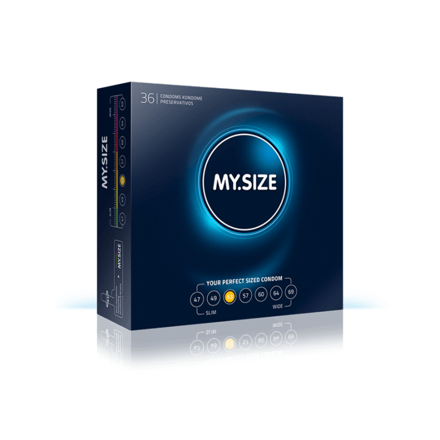 My Size 53 - 36 stuks. Het My Size 53 condoom heeft een nominale breedte van 53 mm. en een lengte van 178 mm. Het condooms is gemaakt van natuurlijk rubber latex en is voorzien van glijmiddel op siliconenbasis. Het condoom heeft een rechte pasvorm, heeft een gladde structuur en is voorzien van een reservoir. De dikte van het condoom is normaal te noemen met 70 microns, oftewel 0,07 mm.